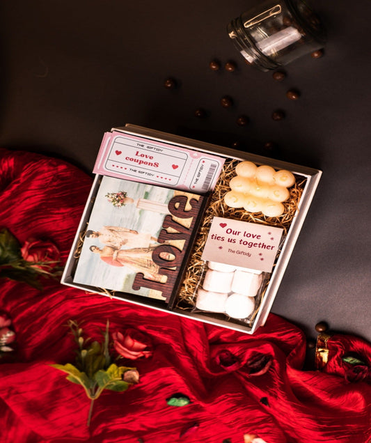 Love frame with picture Marshmallow pack with tag Love coupons Scented bubble candle (Black/White) Greeting...