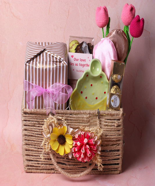 Kulhad ceramic cup x2 Rainbow planter x1 Vahdam assorted tea box x1 Greeting card with...