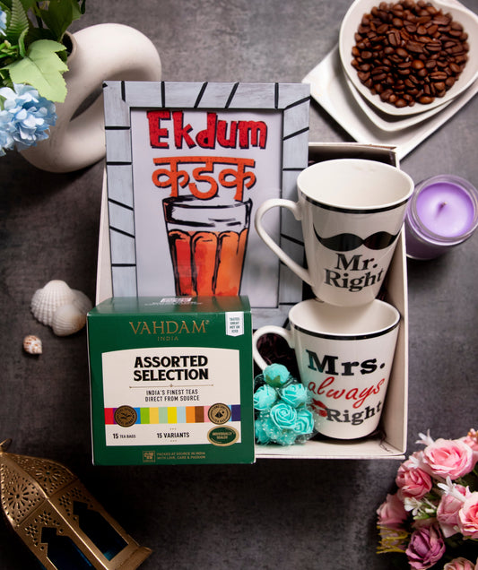 Ek Dum Kadak - Quote Frame x1 Vahdam Assorted Tea Box x1 Couple Mugs -...