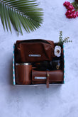 Vegan leather brown wallet Organza potli of 100gms of flavoured almonds 6 chocolate mango/raspberry brittle...