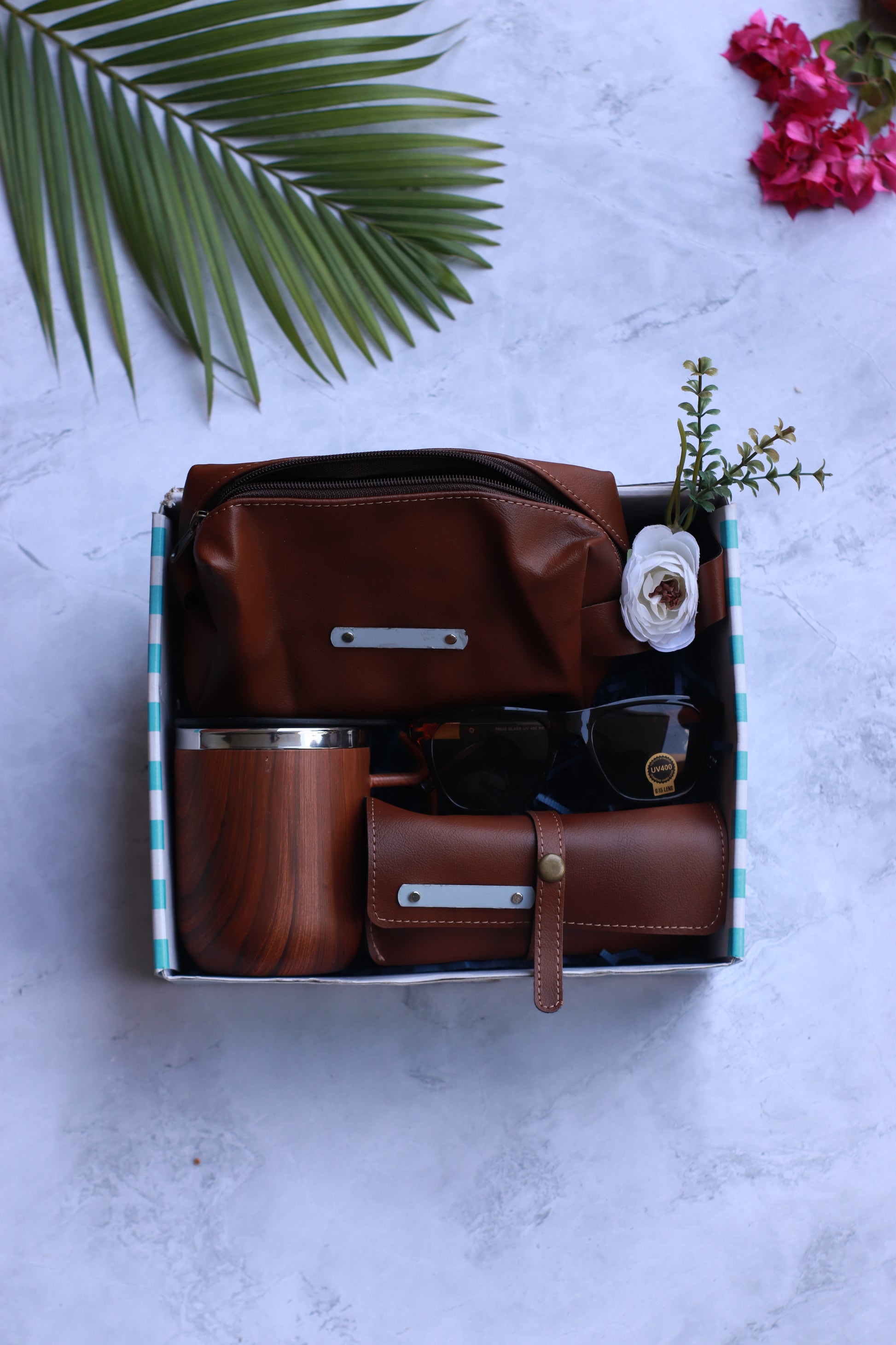 - Cotton mix scarf- Customised name initial bracelet with flower and thunder- Vegan leather jewellery...