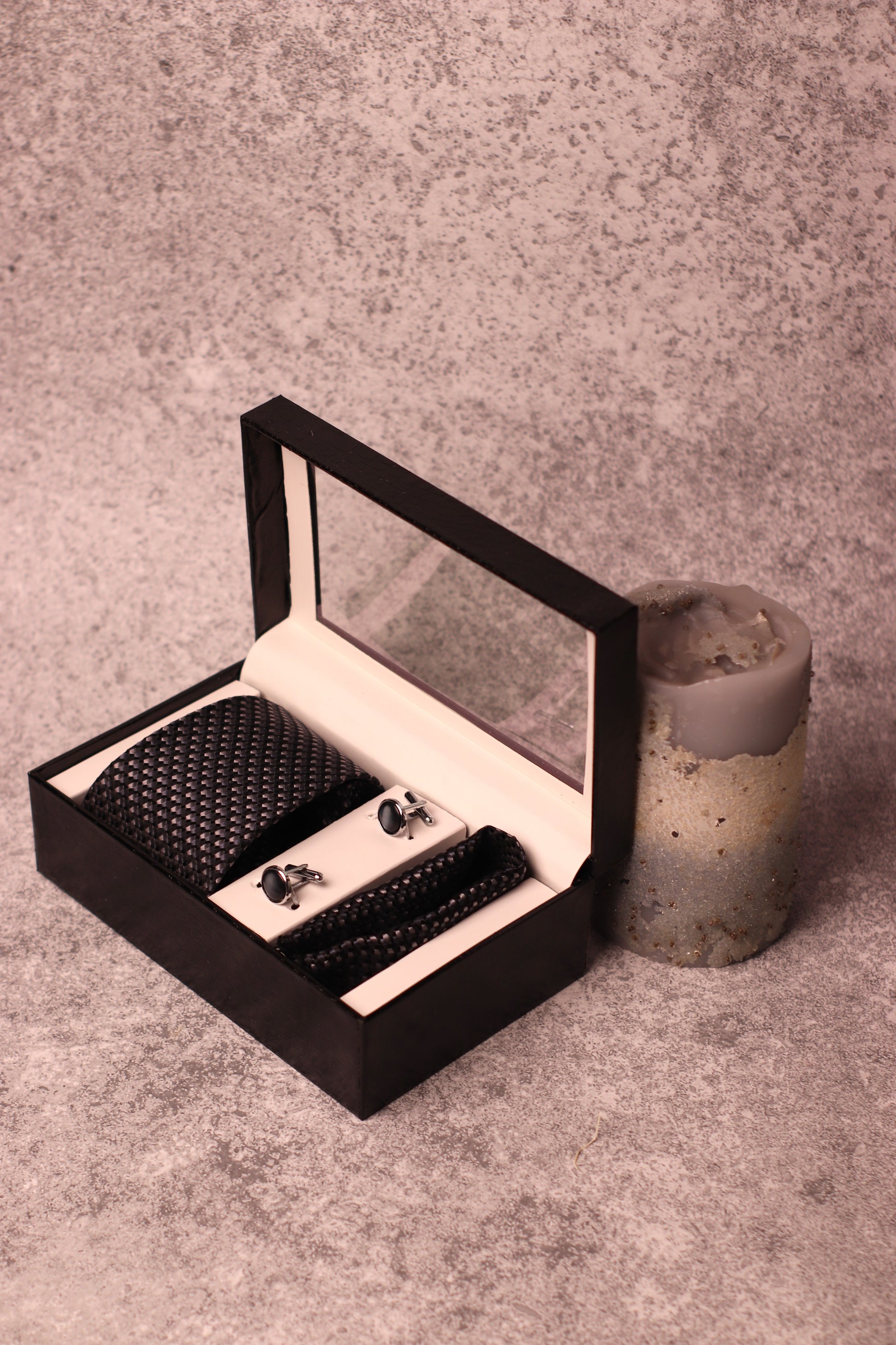 - Tie, cufflink & pocket square set